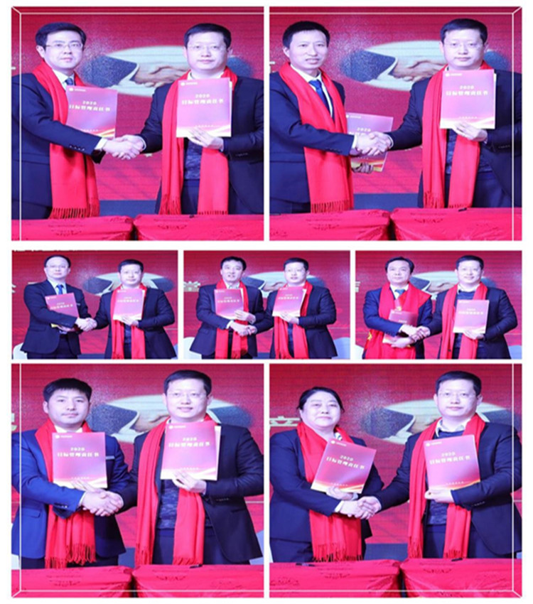 在介紹集團(tuán)組織框架和集團(tuán)、各子公司高管后,各位高管與郭雅磊總裁簽訂《目標(biāo)管理責(zé)任書(shū)》,部分單位的高管帶領(lǐng)管理團(tuán)隊(duì)進(jìn)行工作動(dòng)員表態(tài),向集團(tuán)保證完成2020年工作任務(wù)。